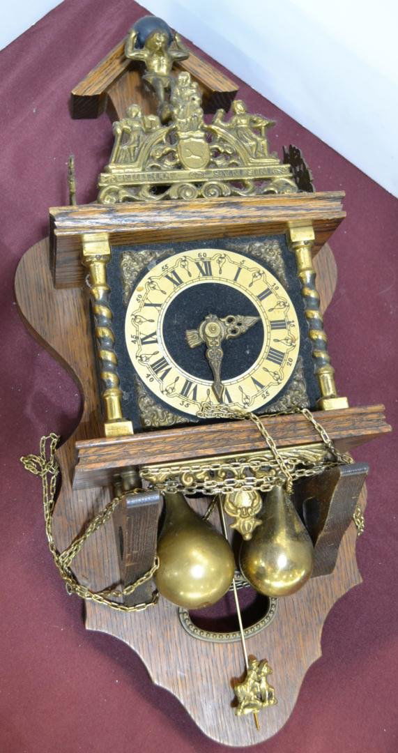 Weight shape may vary between shipments. Clock strikes the wrong time. At top of the dutch clock stands atlas bearing the weight of the world on his shoulders. Nu elck syn sin which translates to.